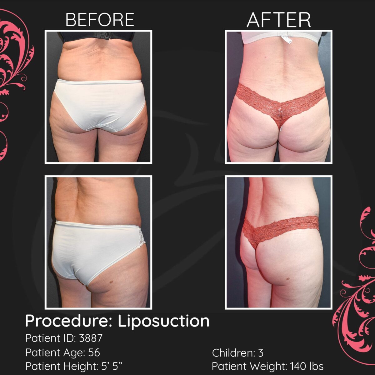 Liposuction along the flanks can help create a smoother waistline and improve the shape between the torso and hips. Many patients notice this area makes a meaningful difference in how clothing fits.